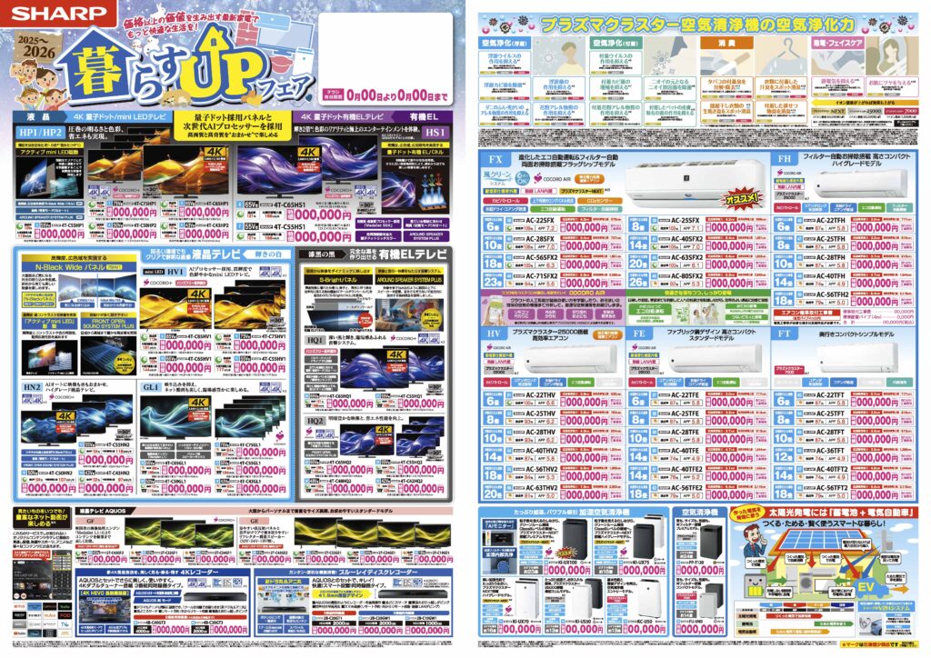 シャープの現行商品を約150点前後掲載したA2サイズの大判チラシです。